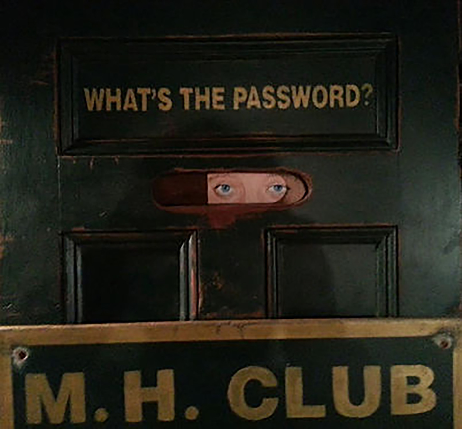 Represents era of prohibition/speakeasies. Period door. Mixed media on pine.