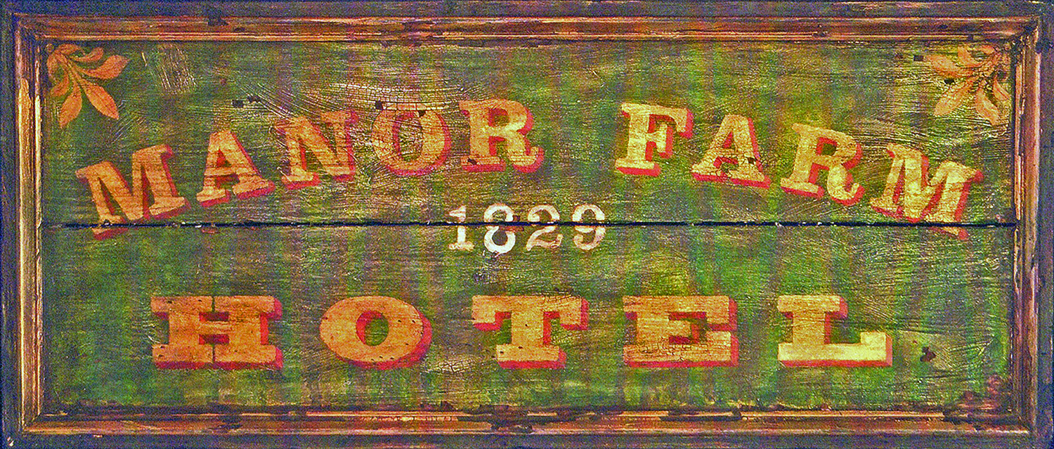 Early 19th century vintage hotel sign. Mixed media on pine.