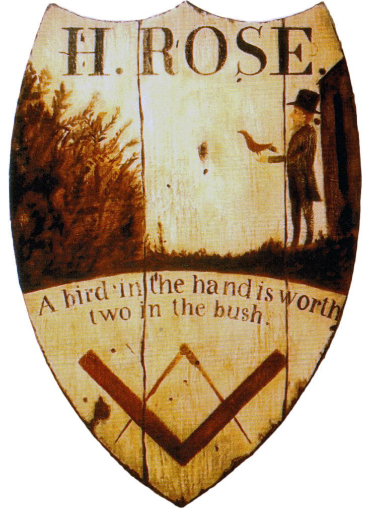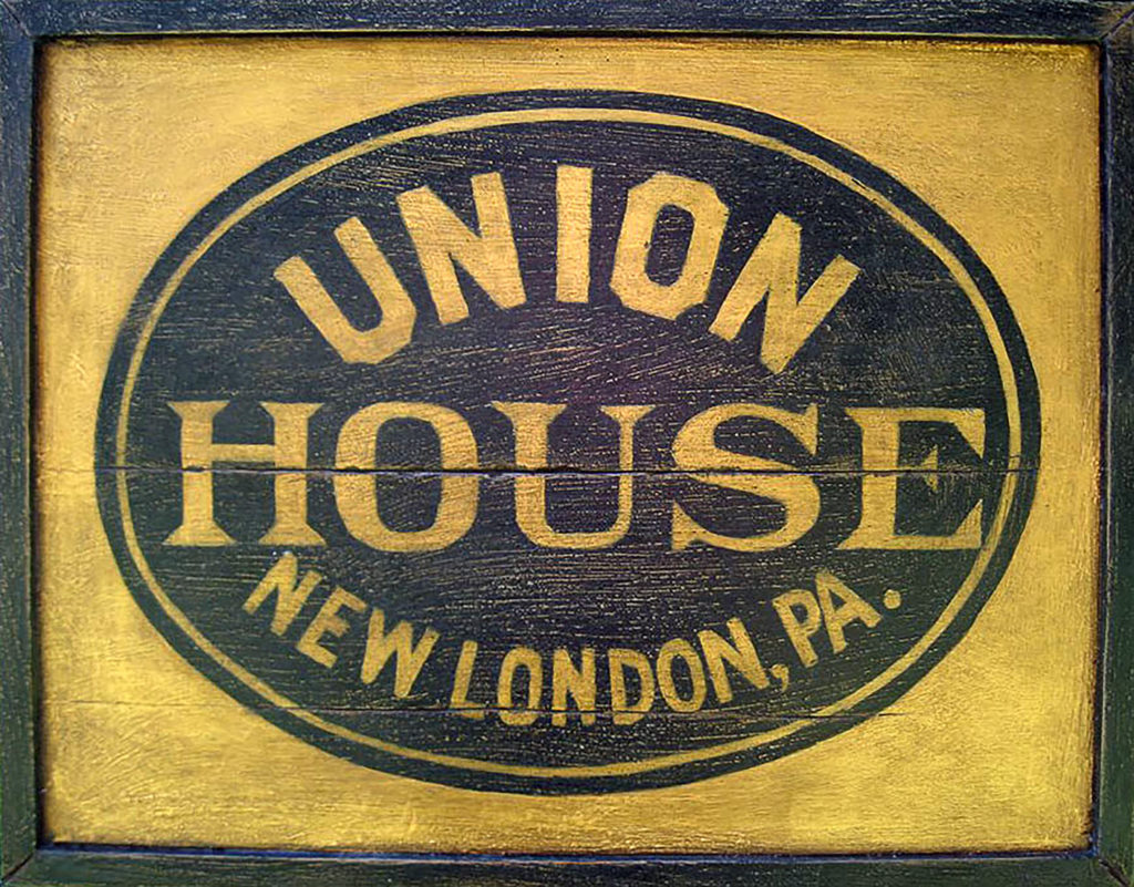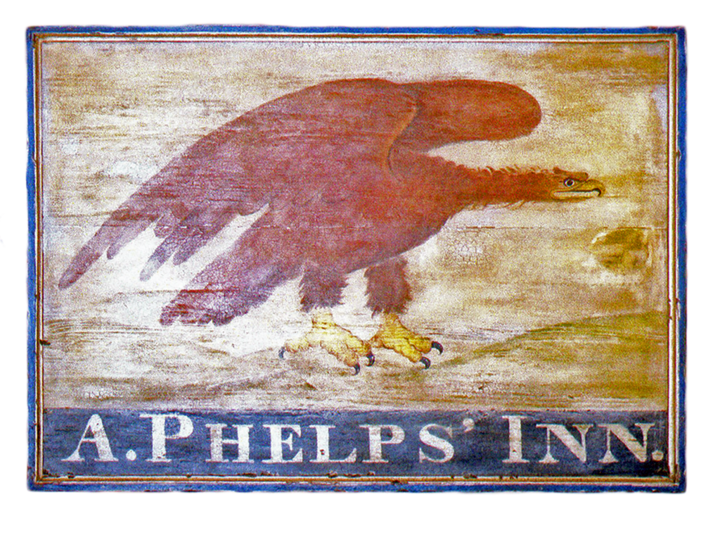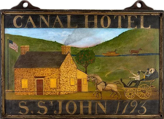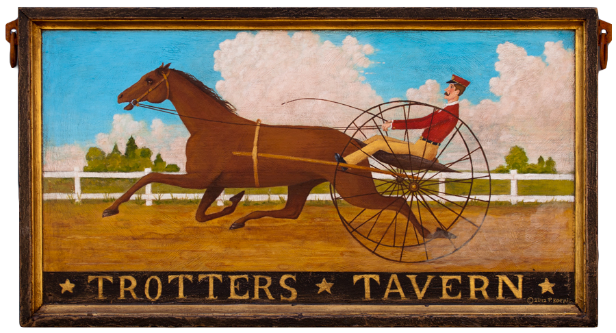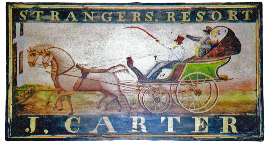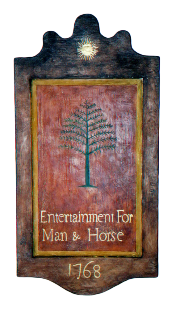 "Crookedwodd Hotel" - Mixed media on pine by Peter Koenig. Late 18th early 19th century hotel and tavern sign