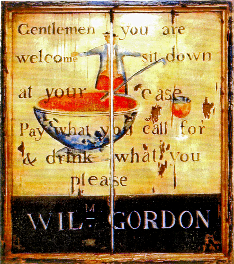 "Wil Gordon" - Mixed media on pine by Peter Koenig. Vintage Tavern sign from the early 19th century, double sided.