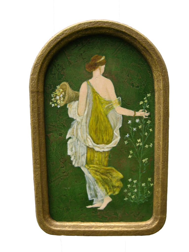 "Spring" Mythic Goddess of Spring. Mixed media on homemade wood panels.