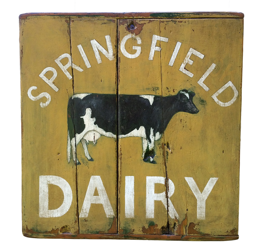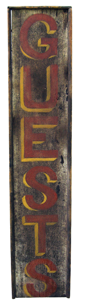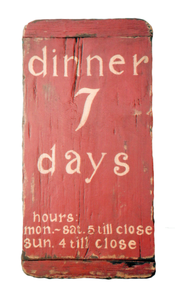 This was an original early 20th century sign by Peter Koenig. Mixed media on pine with elements of Trompe-L’oeil.