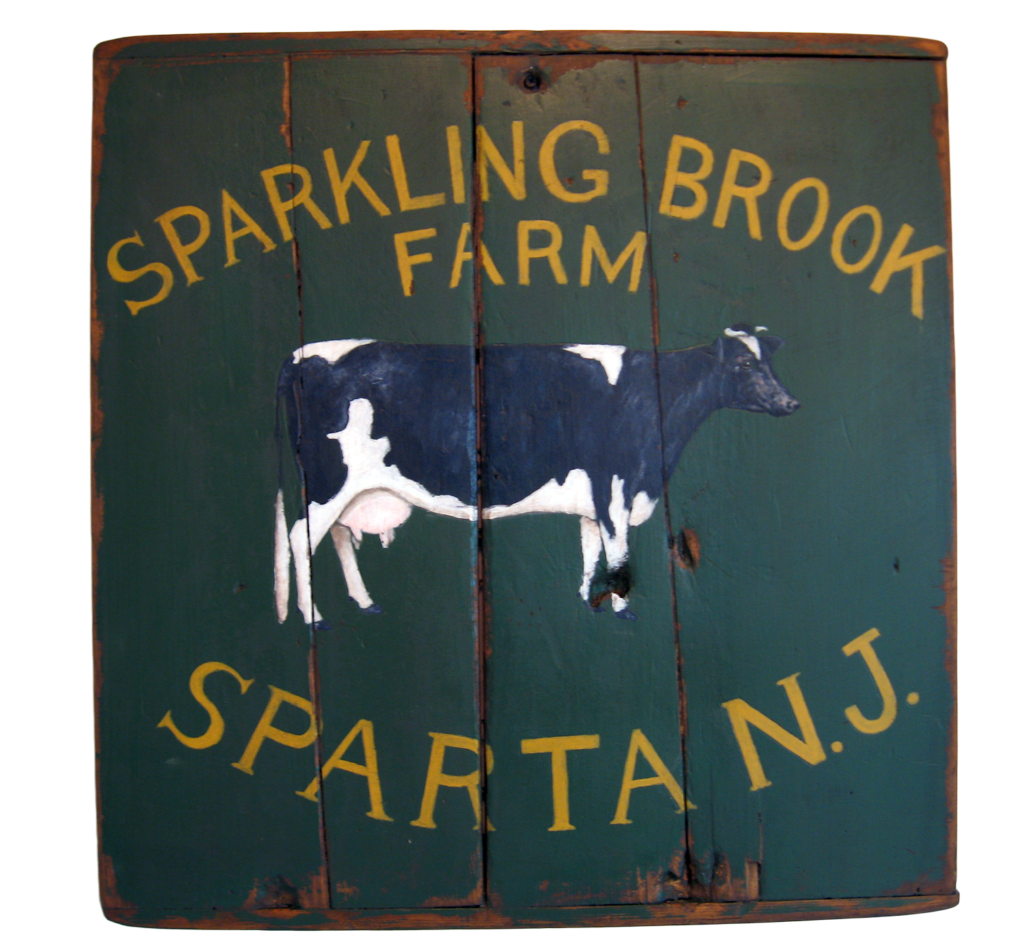 "The Alden Farm and Camps" - Mixed media on a reclaimed wood panel by Peter Koenig. Early 20th century farm sign.