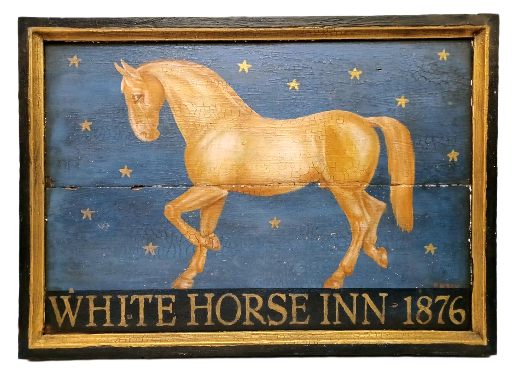 "The Nags Head" - Mixed media on a wood panel. Vintage tavern sign.