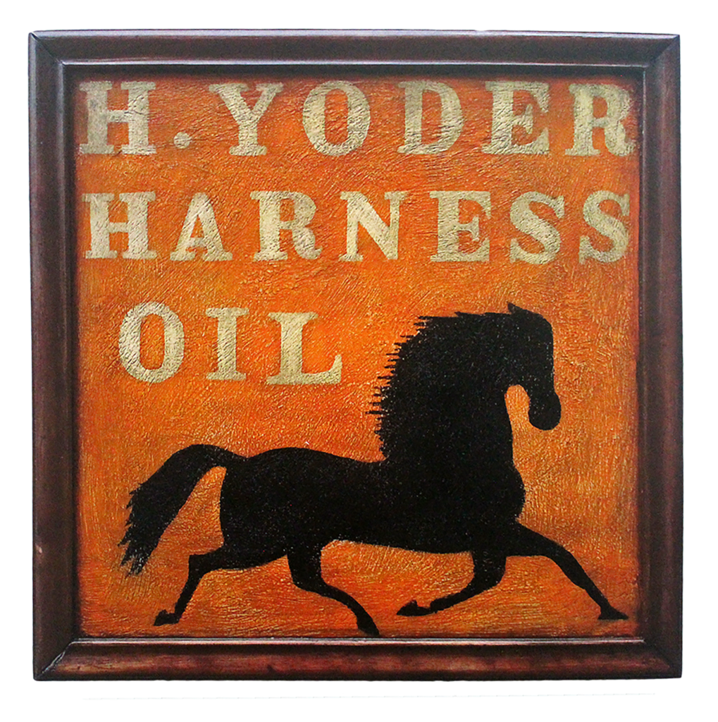 "Farm Horse" - Folk art horse sign on a three pine panel with vintage hardware
